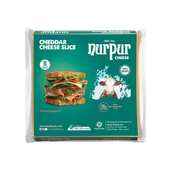 Nurpur Cheddar Cheese slices are convenient for sandwiches, wraps, and quick snacks. Full-flavored and creamy in texture. Loved for both kids’ and adults’ meals. Get Nurpur Cheddar Cheese (10 Slices) and add easy flavor to your dishes!